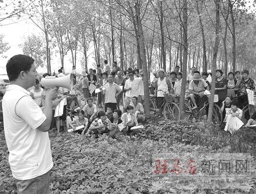 圖為農業專家在西平縣五溝營鎮花生種植區為農民講解科學管理知識時的情景。