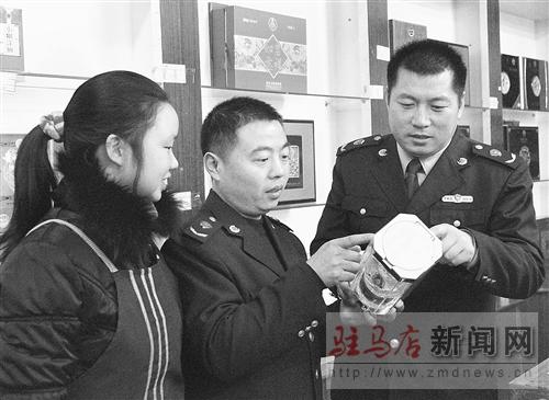 近日,西平縣工商局經濟檢查大隊聯合名酒廠家,對全縣大中型超市經營的名酒開展專項檢查,以確保消費者的合法權益。此次檢查共查獲假冒五糧液白酒35瓶、假冒劍南春白酒51瓶,案值5萬元。圖為執法人員正在超市檢查。 通訊員 張長虹 鄭海平 攝影報道