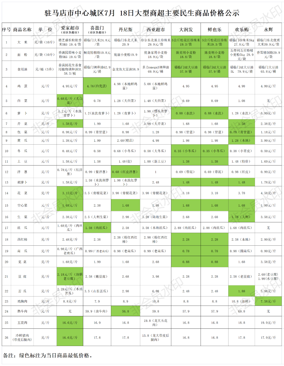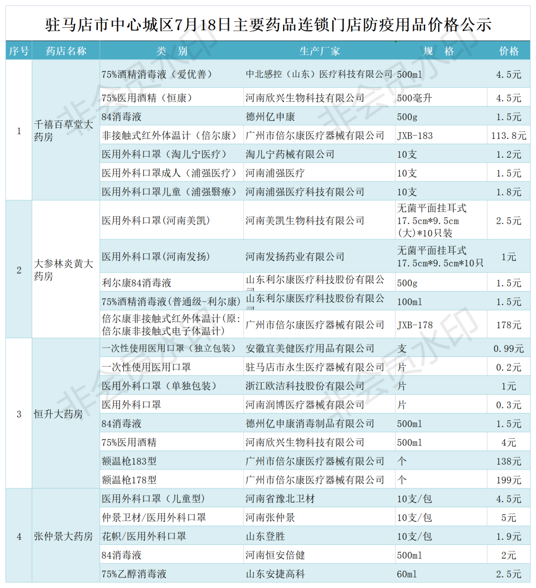 附:7月18日市中心城區商超主要民生商品、藥店防疫用品價格一覽表