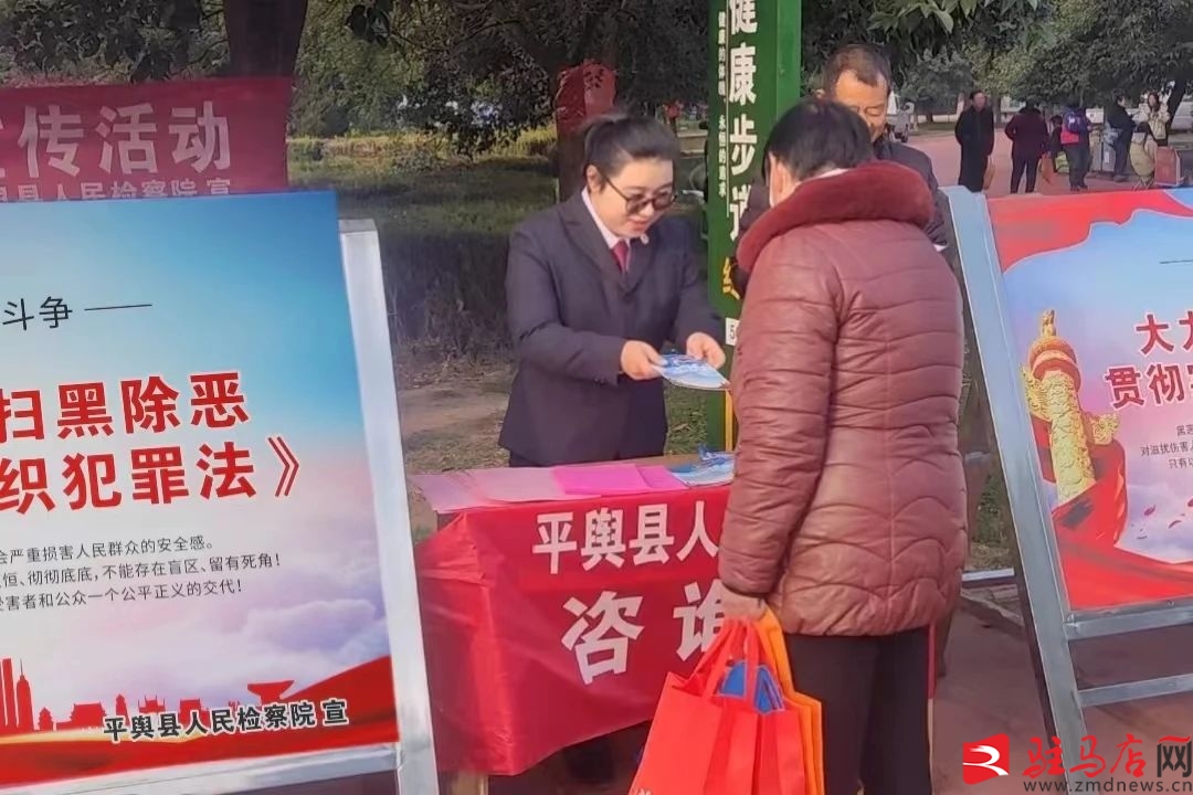 駐馬店網訊(通訊員 侯穩穩)為提升人民群眾對《反有組織犯罪法》和常態化掃黑除惡工作的認知度和參與度,近日,平輿縣人民檢察院積極開展《反有組織犯罪法》普法宣傳活動。