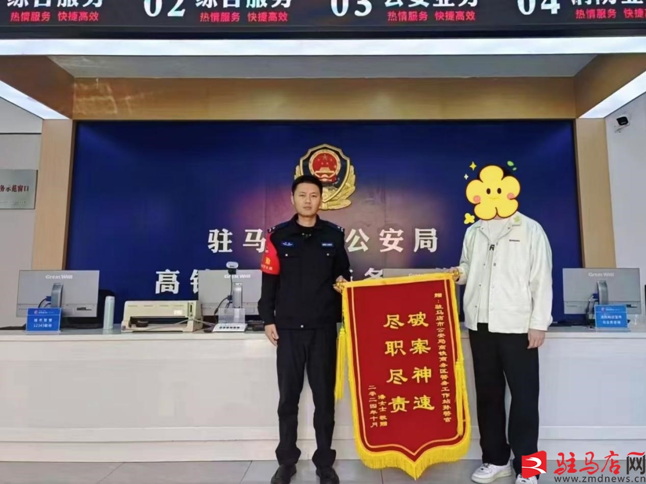 駐馬店網訊(通訊員 楊起帆)民生無小事,件件系警心。近日,張先生及其家人將一面印有“破案神速,盡職盡責”的錦旗送到駐馬店市公安局示范區分局高鐵商務區警務工作站,對民警為其解決車輛剮蹭問題表示誠摯感謝。