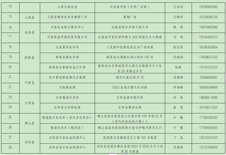 附件:駐馬店市電動自行車鋰離子電池健康評估網點