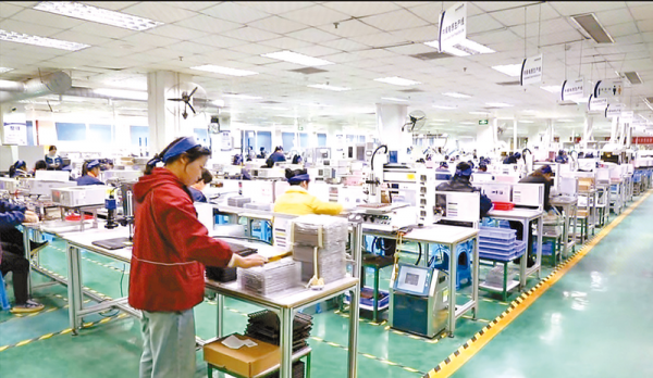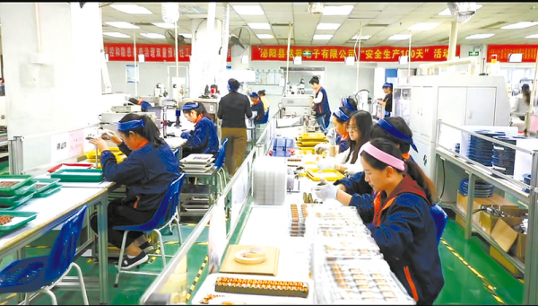 近日,泌陽縣銘普電子有限公司生產車間內一片繁忙景象,工人正在加緊生產磁性元器件、光電部件等電子通信產品,全力沖刺年度目標。