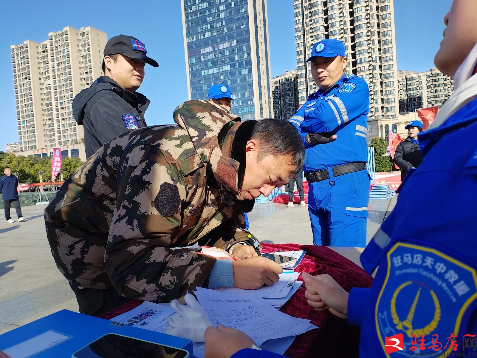 駐馬店網訊(記者 王永良 通訊員 王洪志)11月18日,市區世紀廣場暖意融融,驛城區退役軍人事務局主辦的專場招聘會在此拉開帷幕。駐馬店天中救援隊身著標志性“天中藍”隊服亮相現場,以公益初心為引、以專業實力為基,成為眾多退役軍人爭相咨詢的焦點,讓“退伍不褪色”的軍人情懷與“救在身邊”的公益使命在此深情相擁。